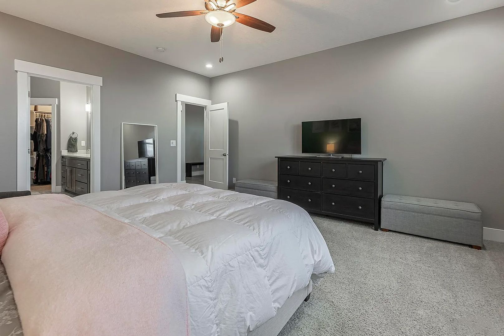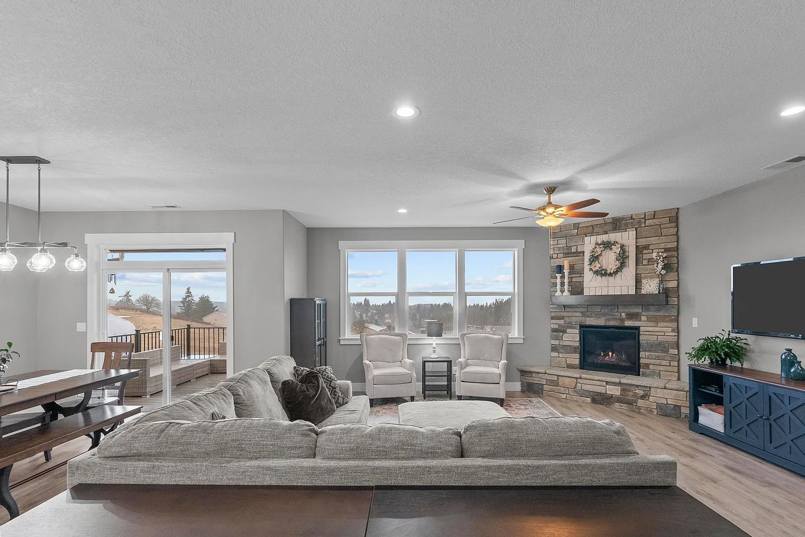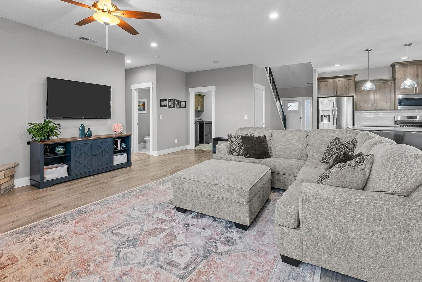 Step inside to soaring vaulted ceilings, luxury vinyl plank flooring, and an open-concept layout filled with natural light. The main-level primary suite features a walk-in closet and private bath, while three additional bedrooms and two full baths offer flexibility for families, remote work, or shared living.