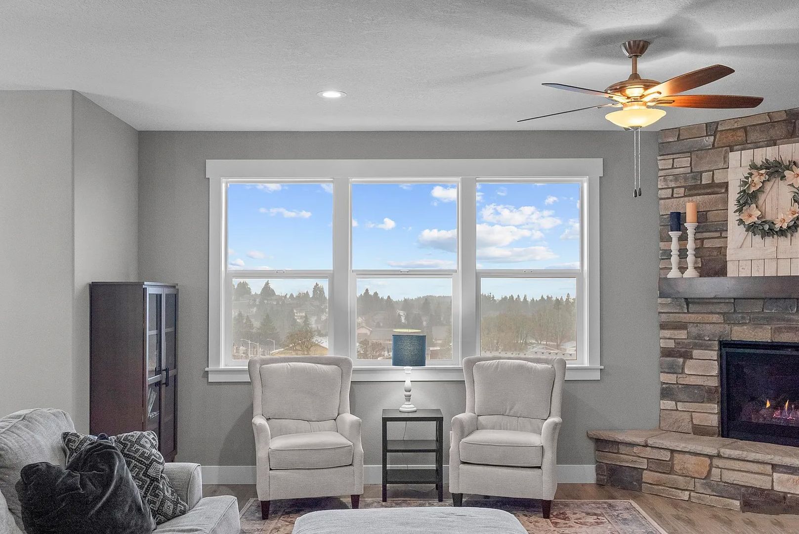 Enjoy cozy evenings by the gas fireplace, and year-round comfort with forced central heating and air-conditioning. Bedrooms feature plush carpet, while bathrooms are finished with elegant tile.