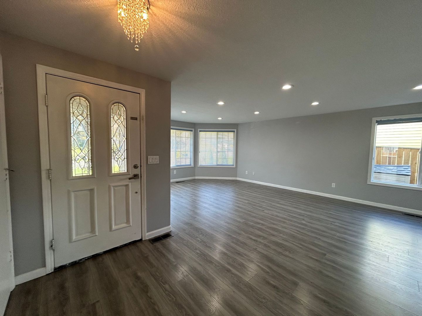 Just off the kitchen you step outside onto the large, covered patio through the sliding glass door and can relax in your own private back yard with plenty of patio space for a BBQ and patio furniture and lots of room for kids or pets to play!